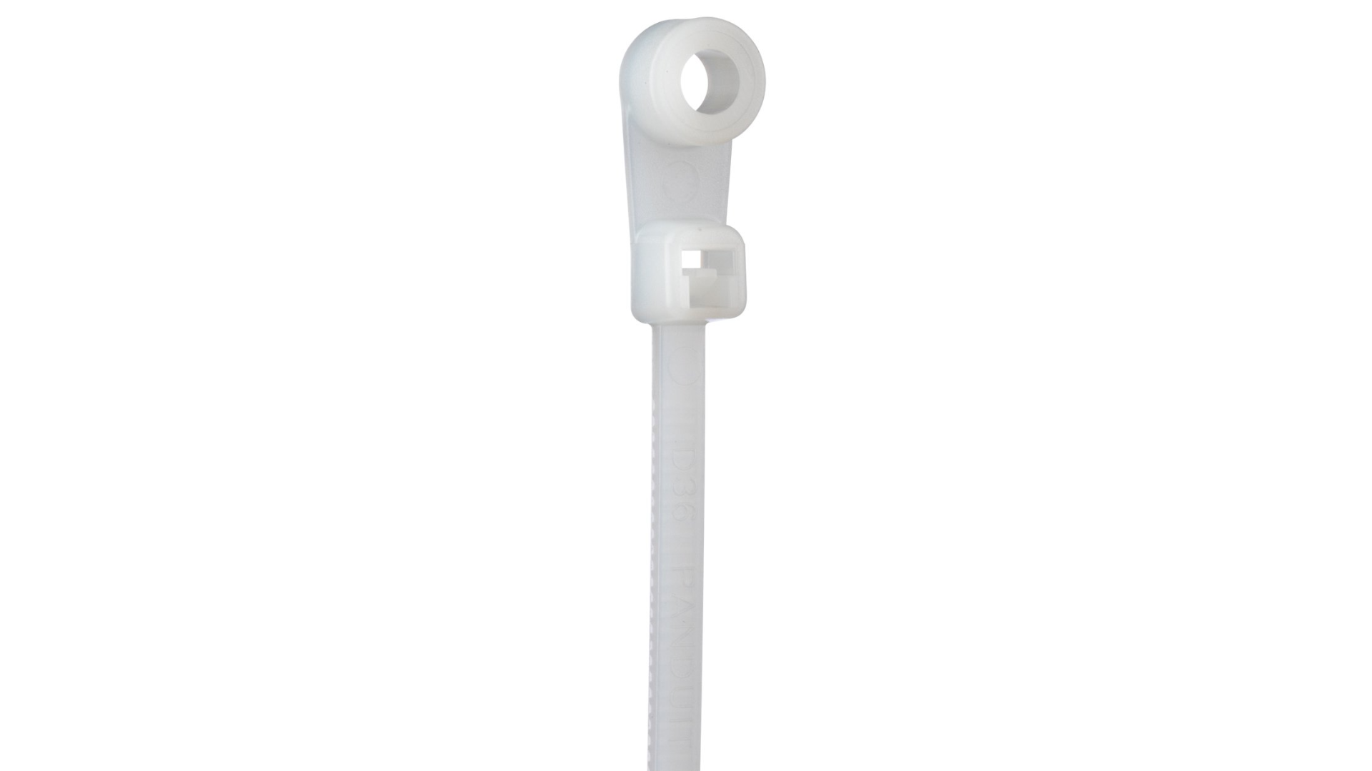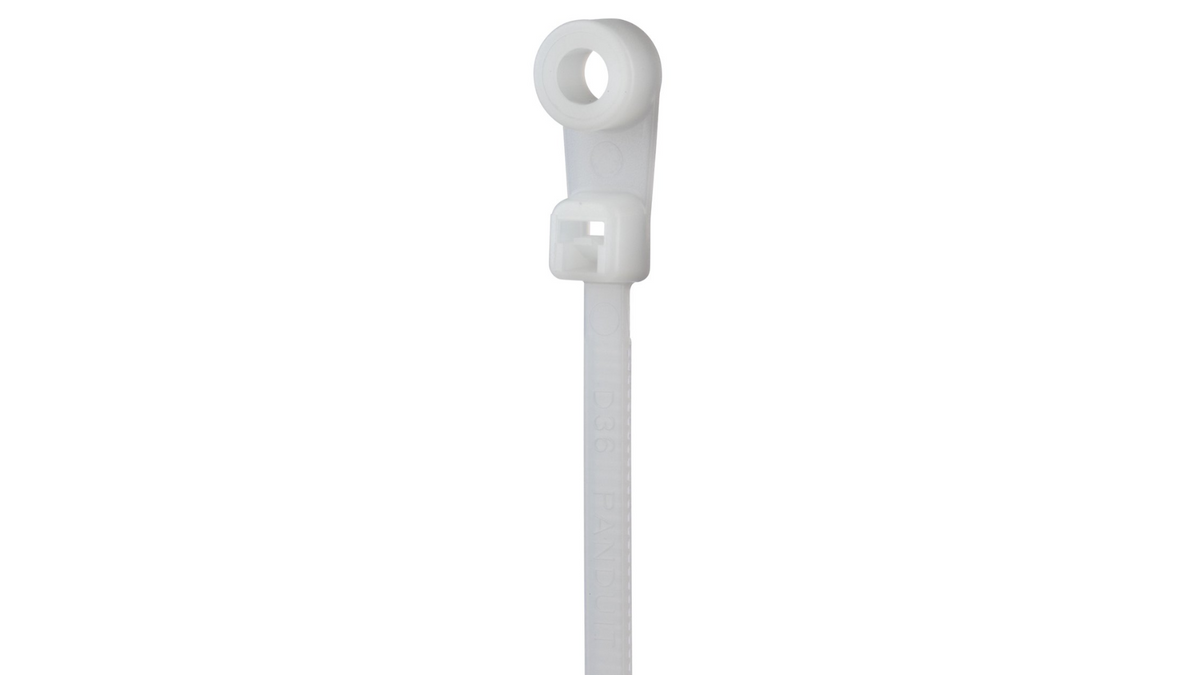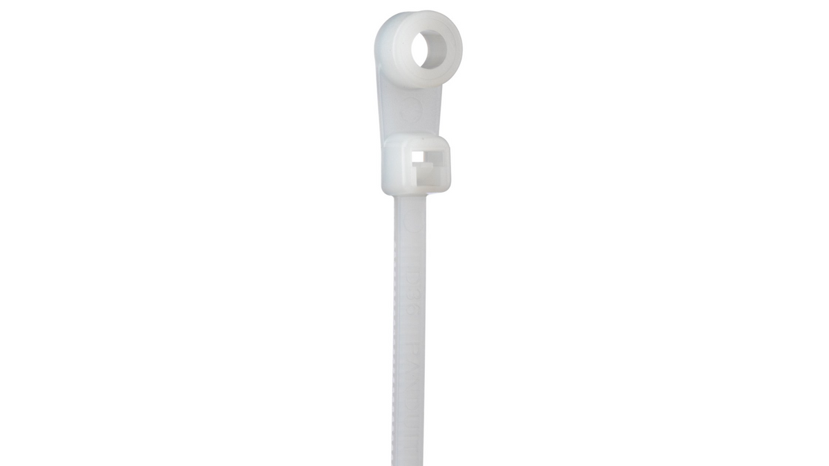 The Panduit PLC2S-S6-M is a Nylon clamp tie designed to secure bundled wires to surfaces using a fastener through the molded mounting hole. Its self-locking design helps maintain dependable cable routing and management.